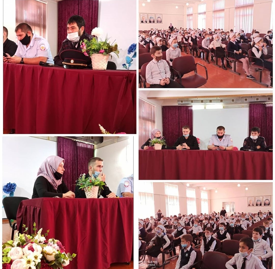 Встреча с инспекторами по пропаганде БДД ОГИБДД ОМВД России по г.Аргун Мантаева Х. и Якубова А. с учащимися начальной школы