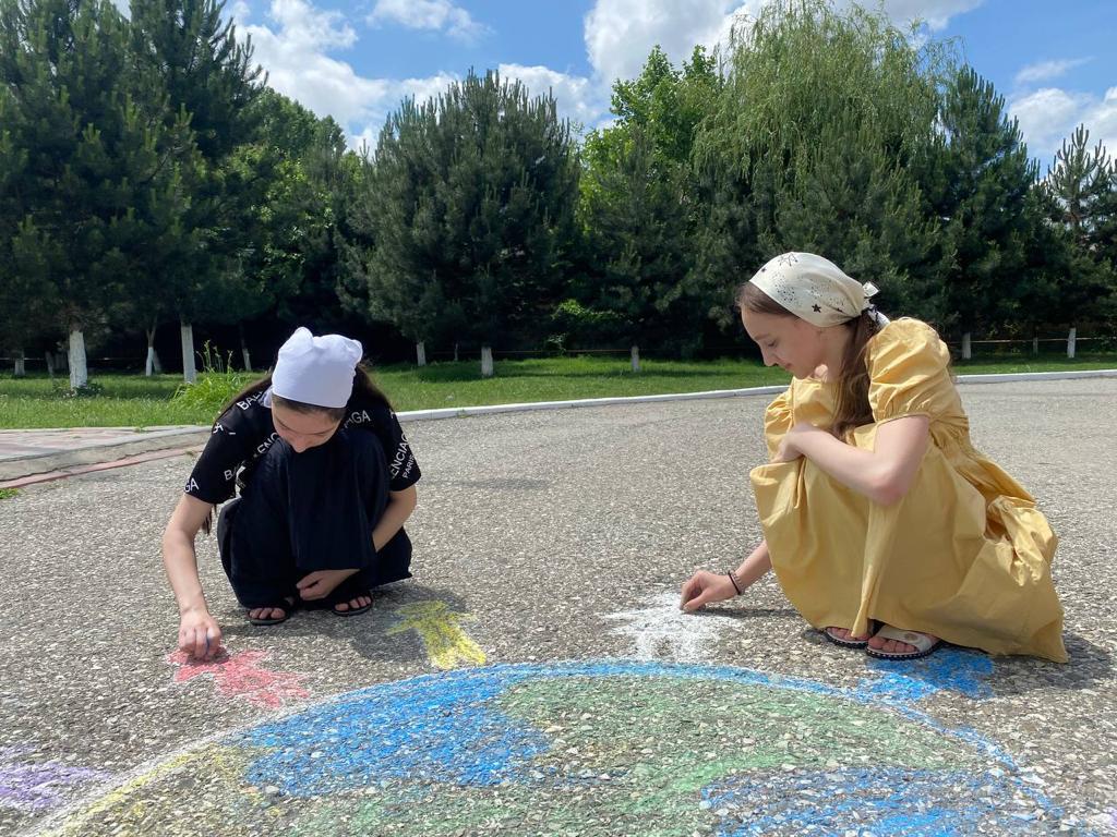 Мероприятия ко Дню солидарности в борьбе с терроризмом: Конкурс рисунков на асфальте «Мирное небо», классные часы, Урок Мира.