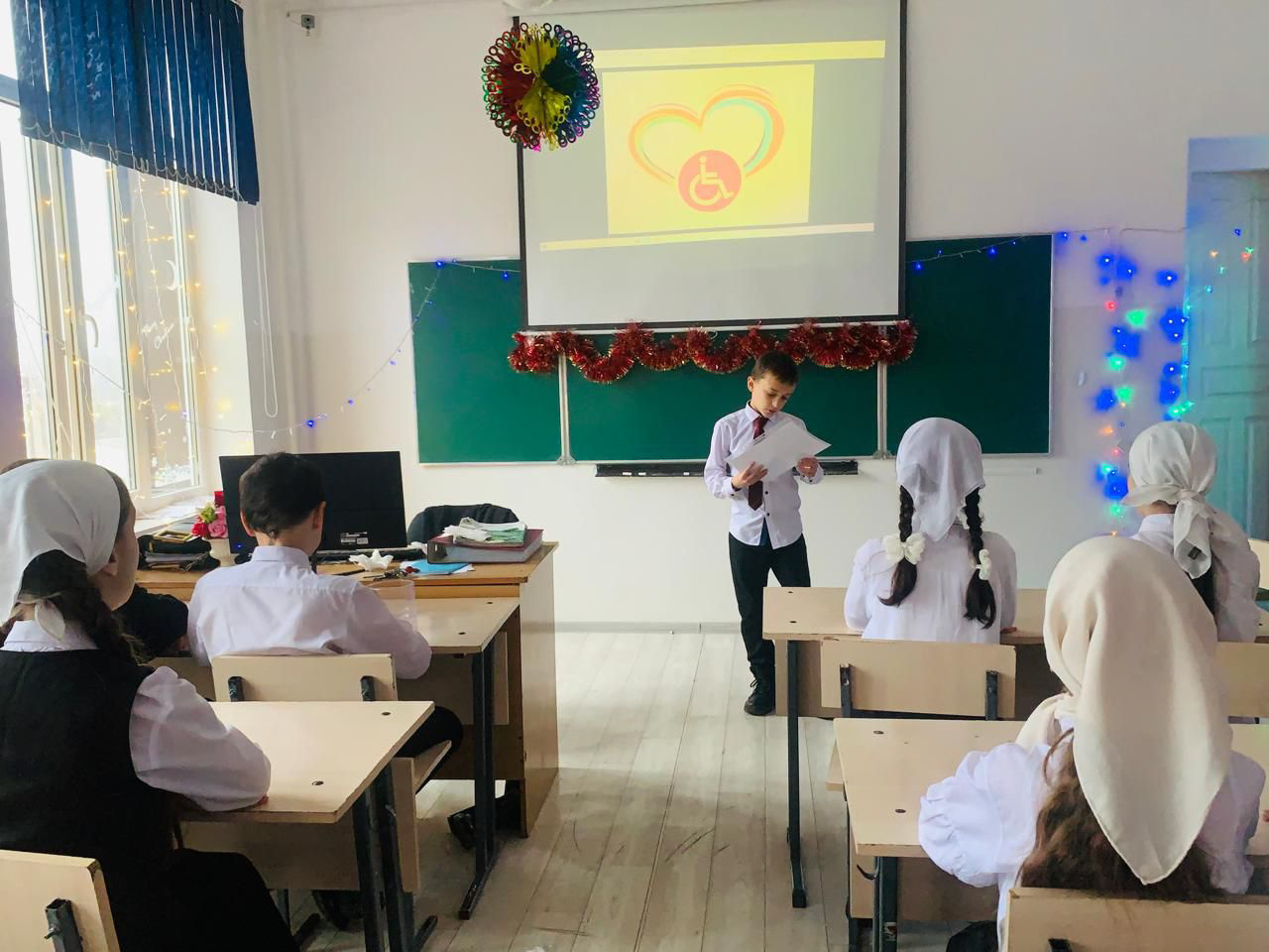 3 декабря-Международный день инвалидов! Этот день трудно назвать праздником! Он является напоминанием каждому из нас, что рядом с нами живут люди, которым необходима наша помощь, поддержка, понимание, забота!3 декабря в МБОУ "СОШ 3" им.М.М.Вайханова педагог-психолог Элиханова З.Х. вместе с детьми 5го класса провели мероприятие ко дню инвалида под названием «В кругу друзей». Детям очень понравилось выступать.