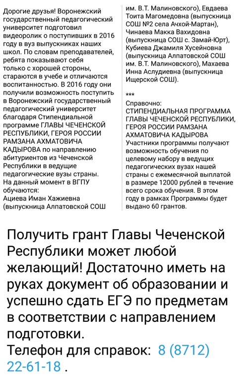 Стипендиальная программа Главы Чеченской Республики
