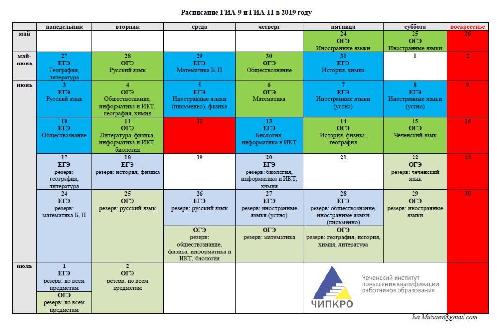 Расписание государственной итоговой аттестации в 2019 году